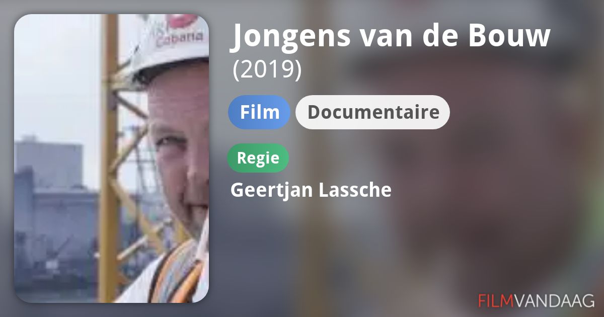 Jongens van de Bouw. 1u 28m. Geertjan Lassche laat door middel van zijn 'Fly on the wall-methode' zien hoe de jungle van de bouwplaats werkt en geeft antwoord op de vraag: Is met je handen werken nog wel van deze tijd? Ai! Er is op dit moment geen video beschikbaar.