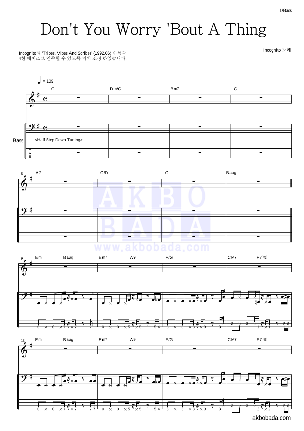 Incognito Don't You Worry 'Bout A Thing 악보 악보바다
