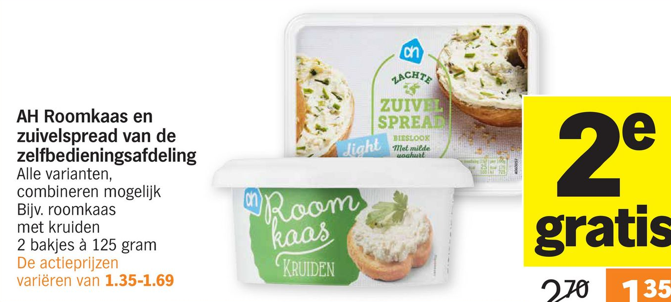 AH Roomkaas en zuivelspread van de zelfbedieningsafdeling van € 2,70 voor € 1,35 indebuurt